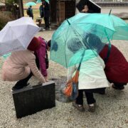雨の中、本堂参拝に足を運んで頂きましたすす逃げ吟行会の皆様。